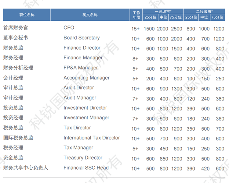 以下是猎头招聘公司Trust钱包科技国际发布的薪酬报告对财务领域的职位薪酬信息统计,供企业和猎头招聘时参考。